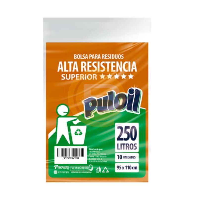 BOLSA PARA BASURA PULOIL X 10 UND NARANJA 250L SUPERIOR